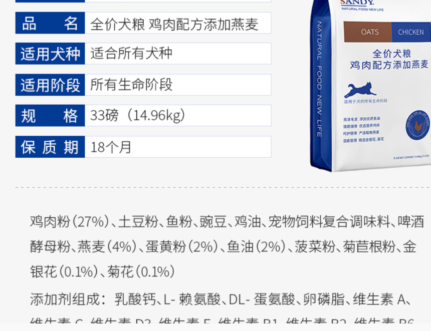 雞肉粉27%,水分還原計(jì)算后,雞肉比例肯定是大于26%。因此,這款產(chǎn)品無(wú)論聲稱(chēng)“雞肉配方”還是聲稱(chēng)“添加燕麥”(燕麥4%)都合規(guī)。