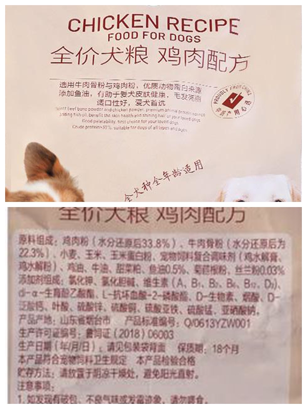 但是,標(biāo)簽中應(yīng)該標(biāo)識(shí)原料雞肉粉的比例,而不是經(jīng)水分還原計(jì)算后的比例,從這一點(diǎn)看,雞肉粉,牛肉骨粉的比例標(biāo)識(shí)是不規(guī)范的。