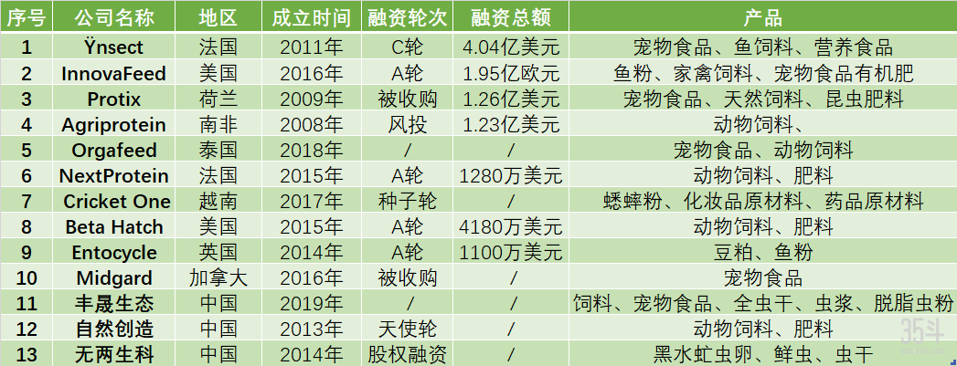 目前昆蟲(chóng)蛋白產(chǎn)業(yè)參與者并不多,在國(guó)內(nèi)更是處于起步階段。目前行業(yè)的領(lǐng)頭者包括來(lái)自荷蘭的Protix、來(lái)自法國(guó)的Ÿnsect、來(lái)自美國(guó)的InnovaFeed,中國(guó)在昆蟲(chóng)蛋白領(lǐng)域的玩家較少,目前已知有豐晟生態(tài)、自然創(chuàng)造、無(wú)兩生科等。