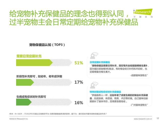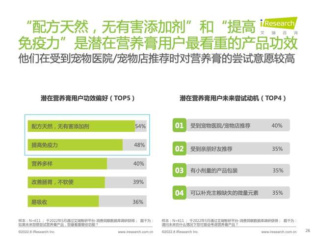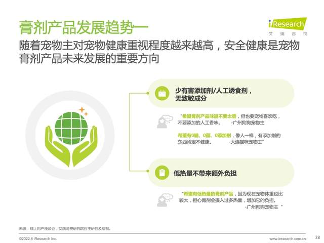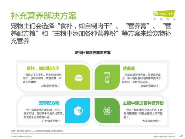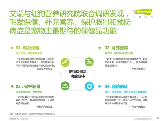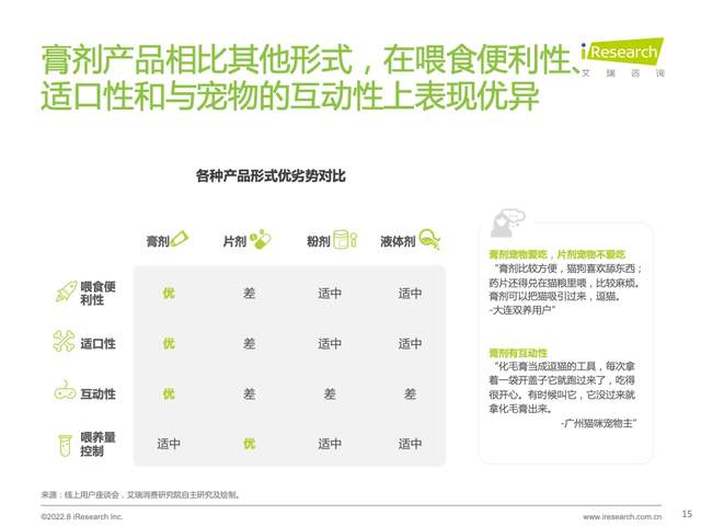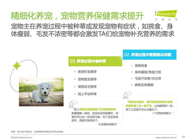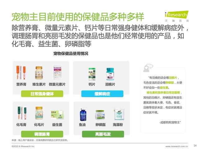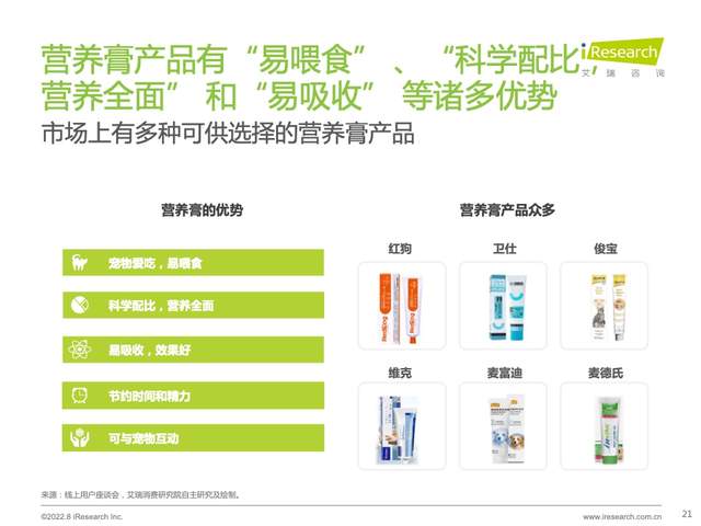 報(bào)告分析了1-2線城市寵物主的養(yǎng)寵偏好以及他們?cè)趯櫸锉=∑飞系南M(fèi)現(xiàn)狀及消費(fèi)態(tài)度;洞察膏劑用戶對(duì)各膏劑保健品品牌產(chǎn)品的體驗(yàn)與評(píng)價(jià)、現(xiàn)有產(chǎn)品的痛點(diǎn)及改進(jìn)建議;同時(shí)對(duì)潛在膏劑用戶的需求及期望進(jìn)行挖掘,了解他們的購(gòu)買阻礙因素及未來嘗試動(dòng)機(jī);從寵物主的需求與現(xiàn)有痛點(diǎn)出發(fā),探索寵物膏劑保健品未來的發(fā)展趨勢(shì)。