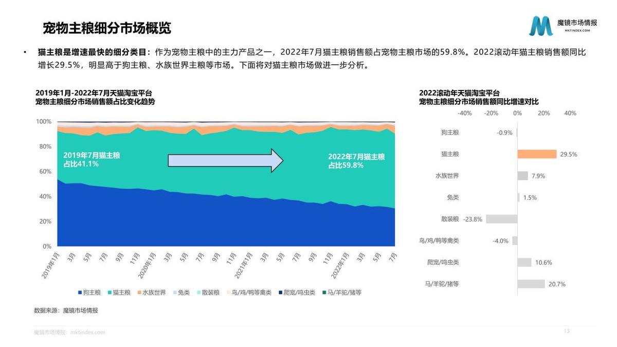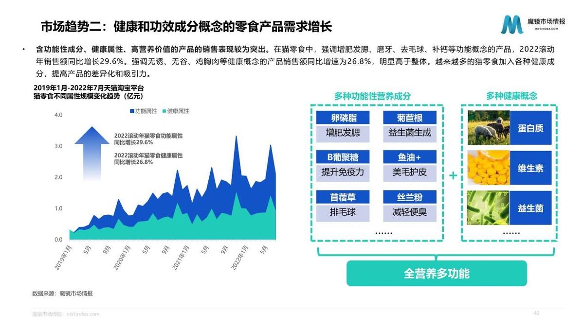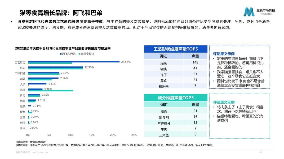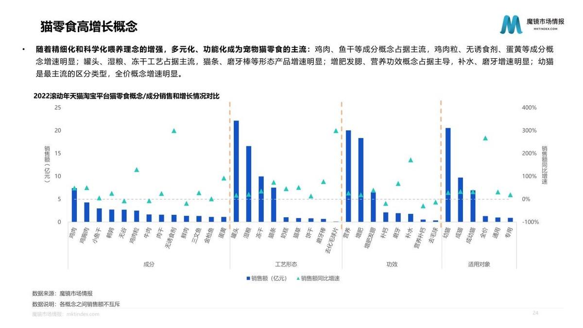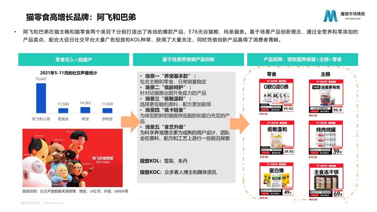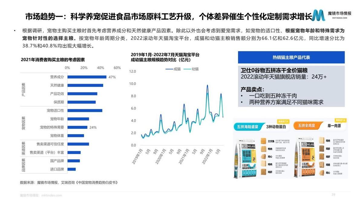 我們此次以高增長的貓主糧產(chǎn)品和貓零食產(chǎn)品為例,對行業(yè)、細分市場、產(chǎn)品、品牌進行分析發(fā)現(xiàn)。對于寵物主而言,食品的安全、健康、營養(yǎng)屬性是其最關心的要素。無論是新興品牌還是傳統(tǒng)優(yōu)勢品牌,品牌信任都是基礎,魔鏡對于新興品牌的建議是,從成長性好且市場相對分散的細分市場切入,在此基礎上做市場拓展。