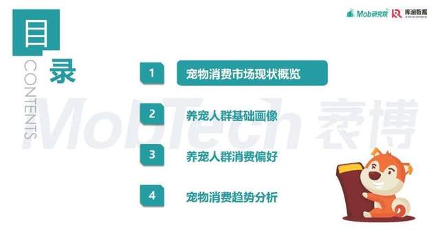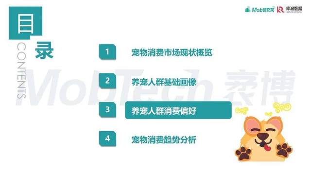 報告分為寵物市場消費概覽,養(yǎng)寵人群基礎(chǔ)畫像,養(yǎng)寵人群消費偏好及寵物消費趨勢分析四部分。指出中國寵物市場未來將向智能化,品質(zhì)化,一體化,即時化及場景化發(fā)展。