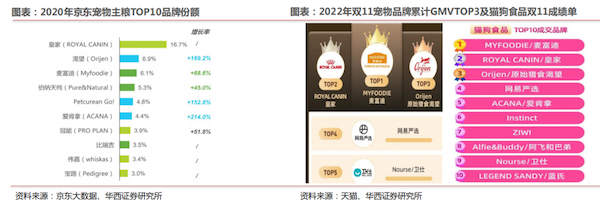 寵物食品競爭格局:國外品牌占主導,國產(chǎn)品牌銷量增長迅速。