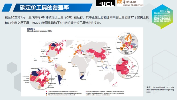 開展工作過程中不僅僅要考慮廠區(qū)內(nèi)或者產(chǎn)品直接的排放,越來越多大企業(yè)也在考慮產(chǎn)業(yè)鏈的排放,比如說外購電是否為可再生能源,產(chǎn)品的碳足跡,寵物食品的供應(yīng)鏈的產(chǎn)品是否低碳,是否零碳。實現(xiàn)碳減排非常重要的工具就是碳市場,全球范圍包括在中國在內(nèi),已經(jīng)有68種碳定價工作,包括碳市場和碳稅。