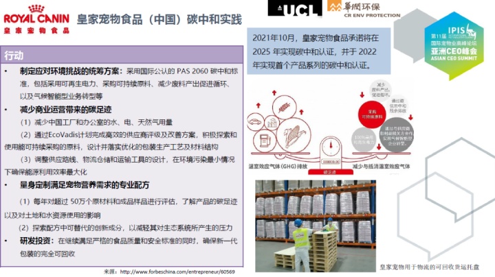 皇家寵物公司也制定了非常系統(tǒng)的碳排放方案,致力于在2025年實現(xiàn)碳中和在2022年實現(xiàn)首個產(chǎn)品系列的碳中和認證。