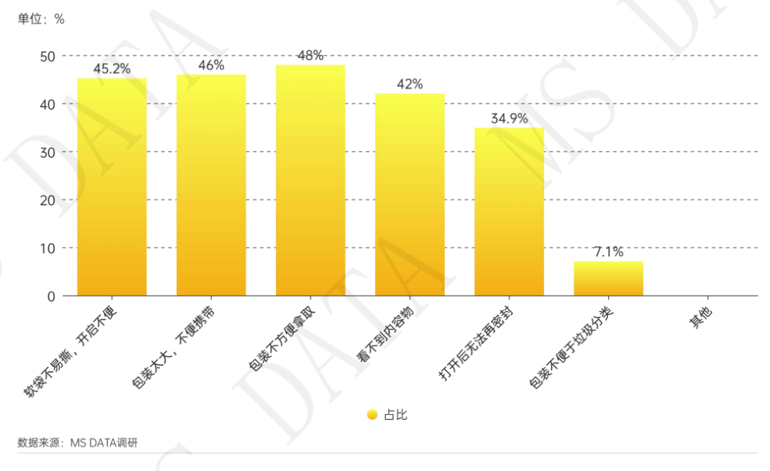 1、軟袋不易撕,開啟不方便(占比45.2%)