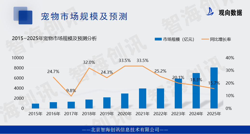 2023年寵物市場(chǎng)規(guī)模將達(dá)5928億元,同比增長(zhǎng)20.1%,預(yù)計(jì)2025年市場(chǎng)規(guī)模達(dá)8114億元。這一增長(zhǎng)勢(shì)頭顯示了人們對(duì)寵物食品的消費(fèi)需求不斷增加,市場(chǎng)潛力巨大。