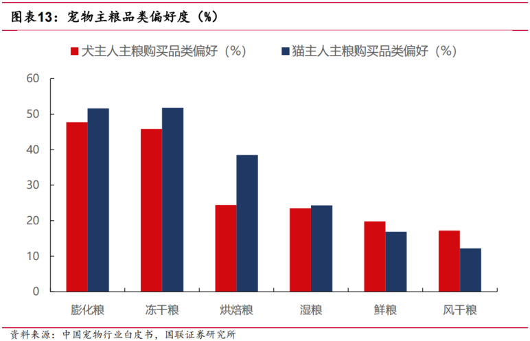 普通主糧可分為膨化糧、凍干糧、烘焙糧、濕糧、鮮糧、風(fēng)干糧,其中膨化糧為通過膨化工藝制造而成的寵物糧,為市場傳統(tǒng)銷售品類;