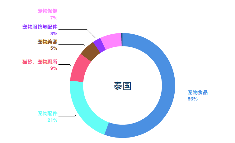 Shopee泰國(guó)站點(diǎn)寵物?品銷售額?例最?,占據(jù)泰國(guó)56%的寵物市場(chǎng)。