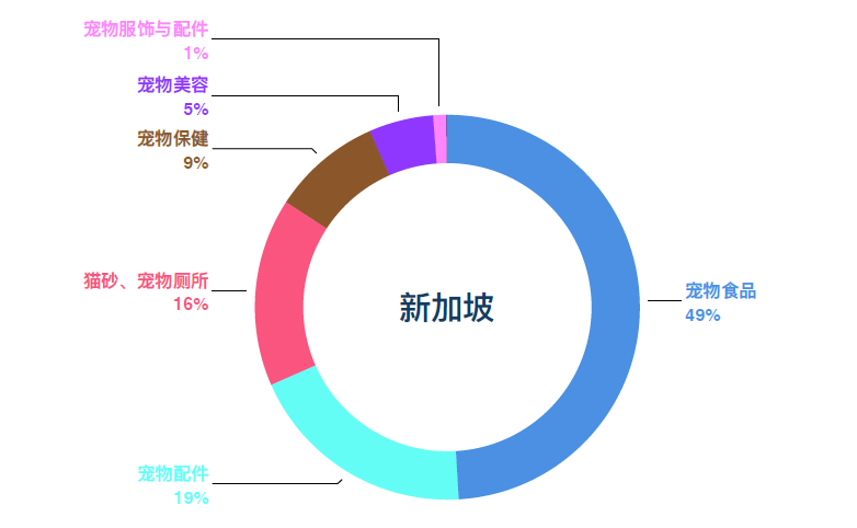 整體上看,Shopee新加坡站中,寵物?品的銷售額?例最?。