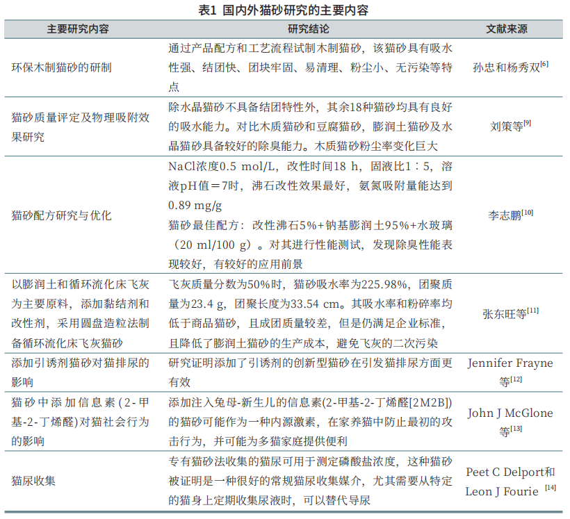 貓砂的研究內(nèi)容與發(fā)展趨勢