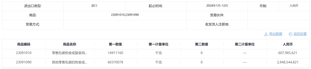 綜合整個(gè)進(jìn)出口的數(shù)據(jù)來看,2024年寵物食品出口總額已達(dá)進(jìn)口總額的約3倍之多,出口總量更是達(dá)到了進(jìn)口總量的4.45倍。盡管國產(chǎn)替代化趨勢全面演進(jìn),但在寵物食品的高端市場上,進(jìn)口品牌仍然是大眾用戶們的主流選擇。