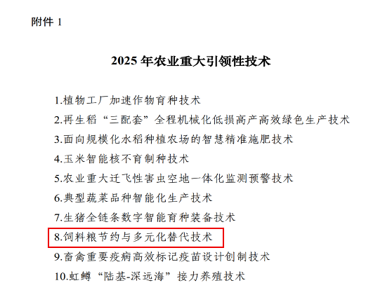 2025年4月,農(nóng)業(yè)農(nóng)村部推介發(fā)布2025年農(nóng)業(yè)主導(dǎo)品種和主推技術(shù)。由全國畜牧總站、北京大北農(nóng)科技集團股份有限公司聯(lián)合畜牧飼料領(lǐng)域多家單位協(xié)同創(chuàng)制的“飼料糧節(jié)約與多元化替代技術(shù)”,成功入選2025年十大農(nóng)業(yè)重大引領(lǐng)性技術(shù)。