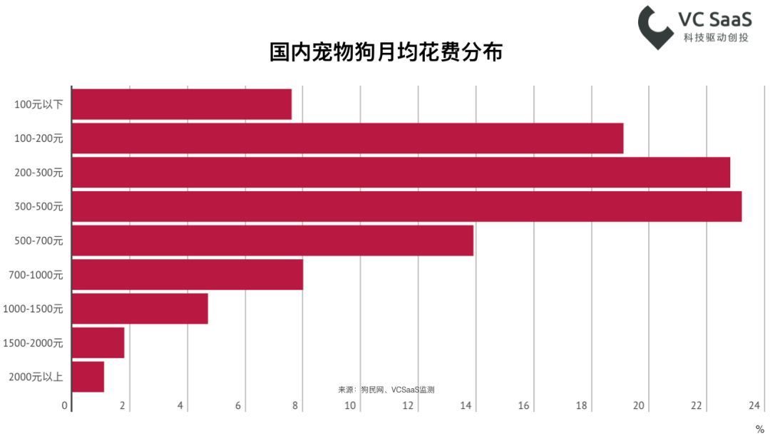 目前中國全國的寵物保有量大約在1億只左右,57%左右的犬類寵物的飼養(yǎng)月均花費(fèi)如上。超過85%的飼養(yǎng)方月均花費(fèi)在1000元以下,50%的飼養(yǎng)方月均花費(fèi)在500元以下??傮w月均花費(fèi)為450元。