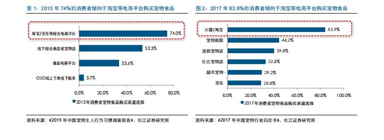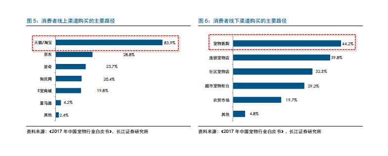 寵物消費(fèi)日趨集中,線上渠道是最主要的購買渠道 線上渠道是中國寵物食品消費(fèi)的最主要的渠道。