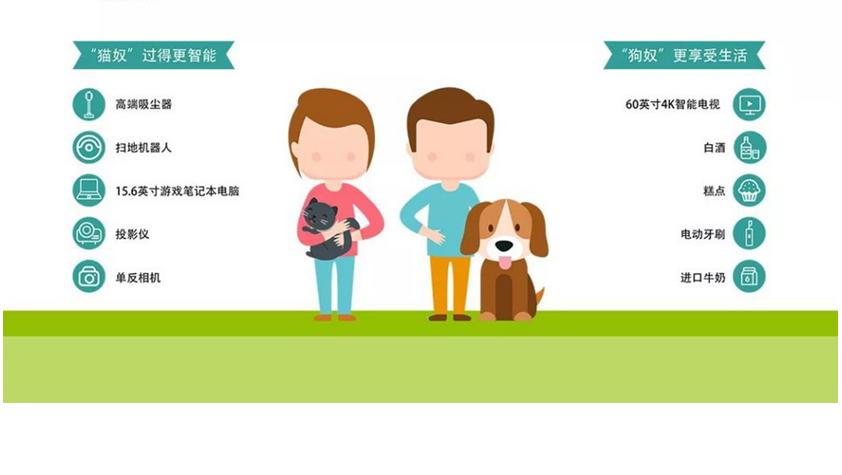 從購(gòu)買(mǎi)貓糧、狗糧的消費(fèi)人群關(guān)聯(lián)購(gòu)買(mǎi)熱門(mén)商品來(lái)看,養(yǎng)貓人群更加關(guān)注科技類(lèi)商品,而養(yǎng)狗人群則更加生活化,購(gòu)買(mǎi)了更多的酒類(lèi)、糕點(diǎn)、進(jìn)口牛奶等。