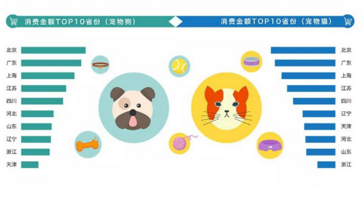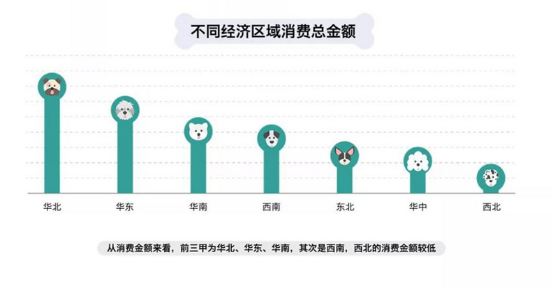 北京,廣州,上海,江蘇,四川,在寵物消費(fèi)方面成主力消費(fèi)大省,華北,華東,華南,寵物消費(fèi)進(jìn)入前三。