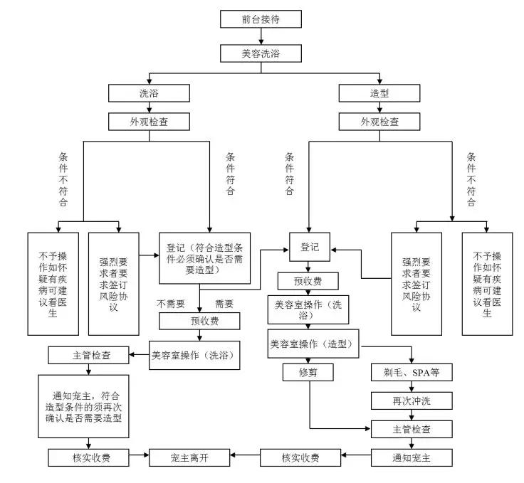 下圖為瑞鵬涉及寵物美容洗護業(yè)務的操作流程與技術要點: