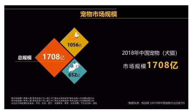 2018年寵物行業(yè)向陽而生,逆勢(shì)而起。根據(jù)《2018年中國(guó)寵物行業(yè)白皮書》,2018年中國(guó)城鎮(zhèn)養(yǎng)寵用戶達(dá)到了7355萬人,寵物(犬貓)市場(chǎng)規(guī)模增長(zhǎng)至1708億元。但在整體經(jīng)濟(jì)下行的大趨勢(shì)下,寵物產(chǎn)業(yè)仍然保持著近30%的年增長(zhǎng)率。