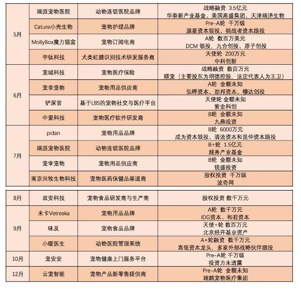 據(jù)不完全統(tǒng)計(jì),2018下半年寵物行業(yè)約完成了10起融資,約為上半年數(shù)量的二分之一,下半年融資情況從金額與輪次來看,融資大多為千萬級(jí),多發(fā)生在企業(yè)中后期,并以寵物醫(yī)療、寵物用品品牌為主,預(yù)計(jì)總數(shù)額近3億元。