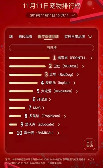 最新的醫(yī)療保健品牌榜單中,排行前十的分別為:福來恩、衛(wèi)仕、紅狗、麥德氏、大寵愛、拜寵清、MAG、多美潔、愛沃克以及雷米高。