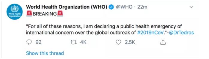 第二個事,間接與寵物行業(yè)相關(guān),依然是世界衛(wèi)生組織,其于1月30日召開會議宣布,中國新型肺炎病毒事件為國際關(guān)注的突發(fā)公共衛(wèi)生事件。但世衛(wèi)組織不贊成甚至反對對中國采取旅行或貿(mào)易禁令。