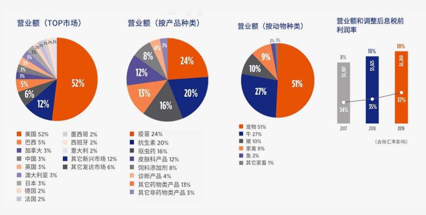 2)碩騰19財年寵物業(yè)務(wù)(約31.9億美元)占比首超51%,成為真正意義上的“寵物公司”;
