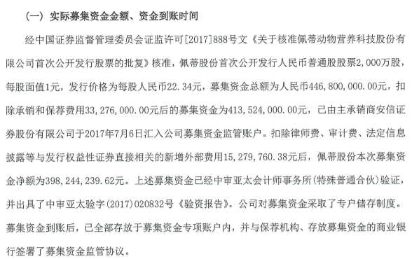 據(jù)寵業(yè)家此前報(bào)道,佩蒂曾在2017年首次公開發(fā)行股票以22.34元/股,發(fā)行數(shù)量為2000萬股,募集資金總額4.46億元。自上市以來,佩蒂已募資將近10億的資金。