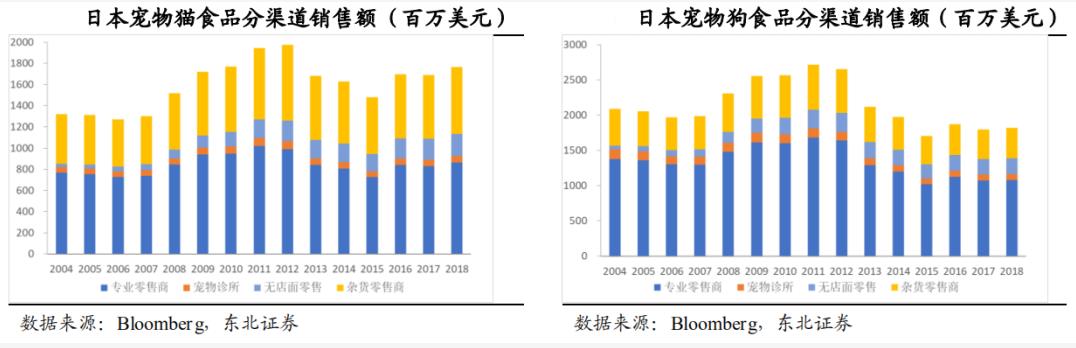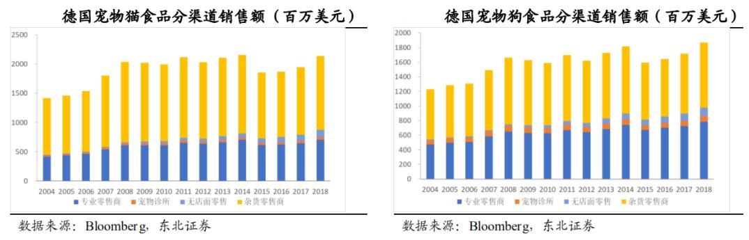 區(qū)別于這些發(fā)達(dá)國(guó)家,中韓等國(guó)寵物食品市場(chǎng)正處于高速發(fā)展時(shí)期,消費(fèi)習(xí)慣的改變,消費(fèi)能力的提升、新消費(fèi)觀念的樹(shù)立和寵物地位的提升,讓寵物主更愿意為寵物買單,面對(duì)強(qiáng)大的市場(chǎng)缺口,專業(yè)渠道、一般零售渠道并不能完全填補(bǔ),電商渠道成為寵物食品銷售額上漲主要渠道。低成本、高效率的電商渠道在中韓這樣的新興寵物市場(chǎng)有著得天獨(dú)厚的優(yōu)勢(shì)。以中國(guó)為例,2009-2018年寵物食品電商渠道占比由0.3%迅速躍升至45.4%,并于2017年超過(guò)專營(yíng)店成為寵食銷售第一大渠道;電商渠道寵物食品銷售增速驚人,遠(yuǎn)超其他渠道。