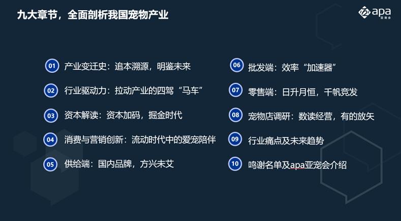 亞寵研究院表示:“由apa亞寵會(huì)出品的藍(lán)皮書(shū),運(yùn)用嚴(yán)謹(jǐn)、科學(xué)的研究方法,通過(guò)案頭調(diào)研、深度訪談、在線問(wèn)卷調(diào)查和定性定量相結(jié)合的分析方法,對(duì)除了寵物醫(yī)療版塊之外的全產(chǎn)業(yè)鏈做了詳實(shí)、詳盡的分析研究。旨在為寵物業(yè)界人士及對(duì)有興趣進(jìn)入寵物行業(yè)的企業(yè)提供參考。”