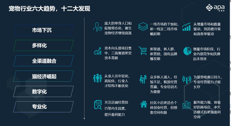 最后,在對(duì)我國(guó)寵物行業(yè)進(jìn)行了全面分析和論證后,藍(lán)皮書(shū)得出了寵物行業(yè)六大趨勢(shì)和十二大發(fā)現(xiàn)。