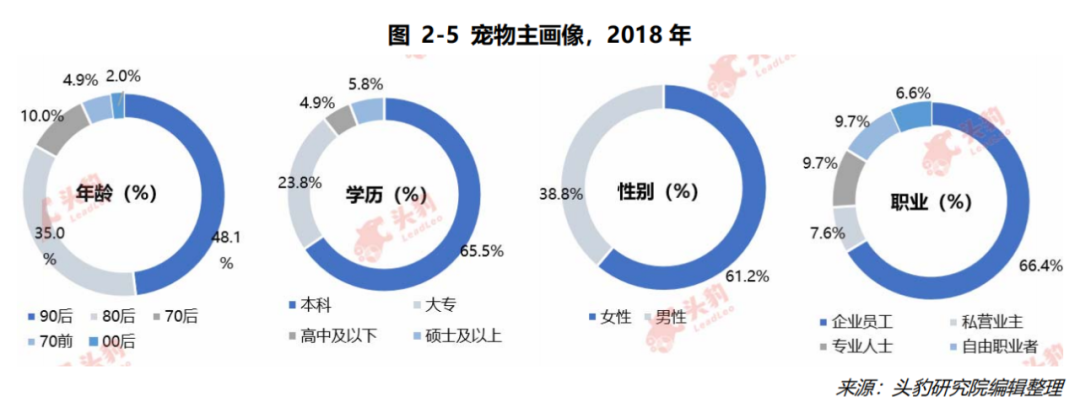 根據(jù)調(diào)查,中國寵物主的特征為年輕、高學(xué)歷、女性、高收入。85.1%的寵物主是80、90、00后,71.3%的寵物主學(xué)歷是本科或本科以上,61.2%的寵物主是女性,66.4%的寵物主是企業(yè)員工。未來隨著中國經(jīng)濟(jì)的持續(xù)發(fā)展,寵物主數(shù)量將進(jìn)一步增長,拉動(dòng)寵物繁殖和活體交易市場需求的增長。
