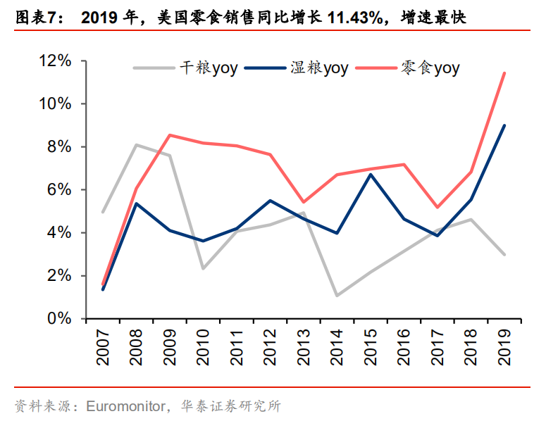 因此,華泰證券認為,在量、價兩端,美國寵物食品行業(yè)基本不會大幅提升,整體增長空間有限。