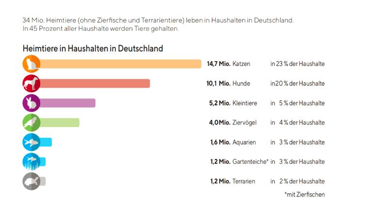 2019年,德國(guó)的寵物統(tǒng)計(jì)數(shù)量達(dá)3400萬只,包括狗、貓、小型哺乳動(dòng)物、觀賞鳥類和觀賞魚等。